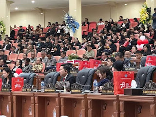 Rapat paripurna dipimpin Ketua DPRD Sulut, Fransiscus Andi Silangen didampingi Wakil Ketua Victor Mailangkay, Billy Lombok dan James Arthur Kojongian (JAK).